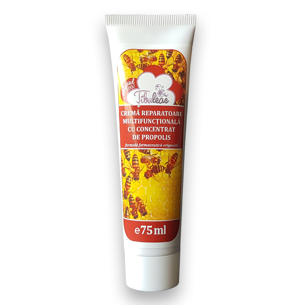 Crema reparatoare multifuncțională ce conține concentrat de propolis, cu acțiune antiinflamatoare, antimicotică, calmantă, emolientă și cicatrizantă.