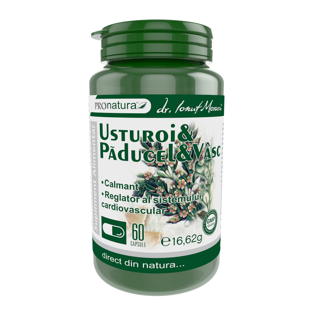 Usturoi Paducel si Vasc este un supliment alimentar care susține funcția cardiacă și circulatorie. Ingredientele active din plante contribuie la normalizarea ritmului cardiac și la inducerea unei stări de liniște.