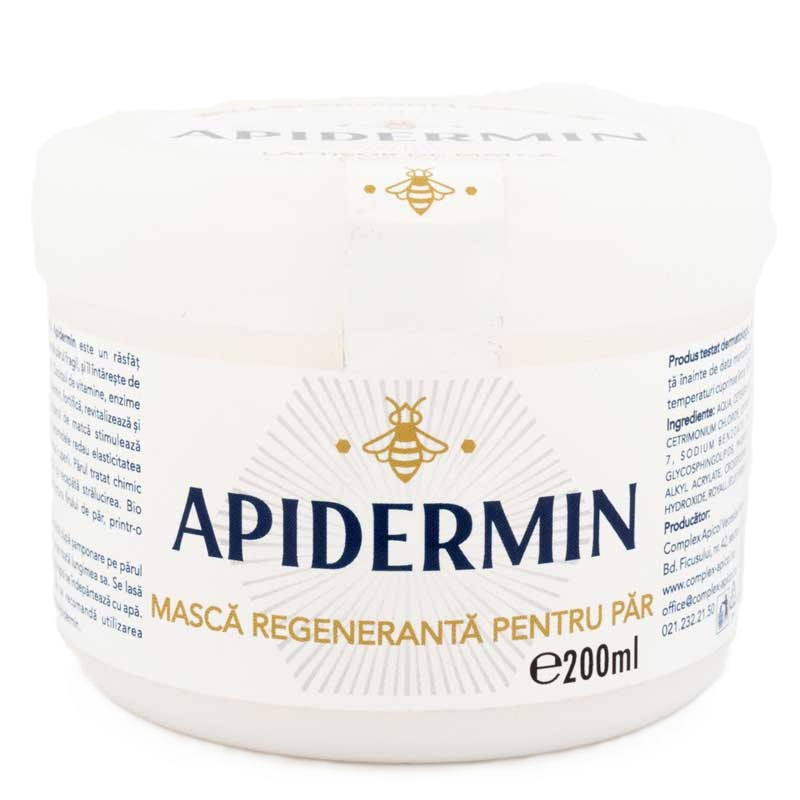 Masca regenerantă pentru păr Apidermin este un produs api-cosmetic care stimulează creșterea părului fragil și agresat chimic, întărindu-l de la rădăcină până la vârfuri. Formulată cu un cocktail de vitamine, enzime și proteine, masca fortifică, revitalizează și remineralizează părul.