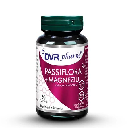 Passiflora sustine activitatea mentala si poate induce relaxarea in situatii de stres si tulburari de somn. Magneziul contribuie la functionarea normala a sistemului nervos si muscular, la mentinerea sanatatii psihice, la reducerea oboselii si extenuarii, la metabolismul energetic normal si la mentinerea echilibrului electrolitic.