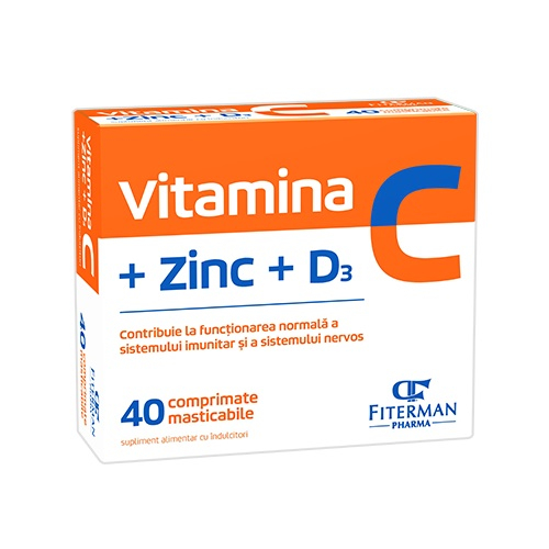 VITAMINA C + ZINC + D3 FARA ZAHAR 40CPR MAST. – FITERMAN PHARMA.